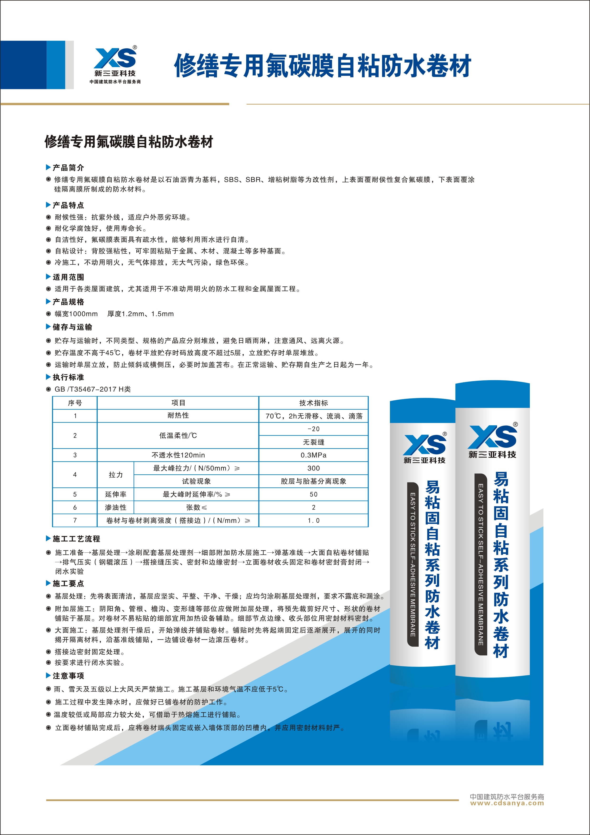 產(chǎn)品簡(jiǎn)介: 以石油瀝青為基料,SBS、SBR、增粘樹脂等為改性劑,上表面覆耐侯性復(fù)合氟碳膜,下表面覆涂硅隔離膜所制成的防水材料。 規(guī)格:1.5 mm 厚度*寬度*長(zhǎng)度 1.5mm 1m×20m 面膜顏色 白色 | ![]() |